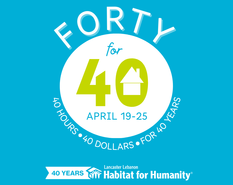 For 40 years, Lancaster Lebanon Habitat has been a place of hope, compassion, and support for individuals and families in our community. Because of generous supporters like you, lives have been changed. As we celebrate this milestone anniversary, we invite you to invest in the next chapter of our mission. Your donation today ensures that Lancaster Lebanon Habitat can continue serving with the same faithfulness, care, and impact for years to come. Together, we can honor the past 40 years by making an even greater difference for the next 40 years and beyond.